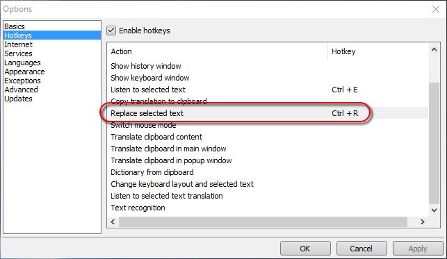 - Go to Hotkeys and choose your keyboard shortcut to Replace Selected Text (double-click on the shortcut item):