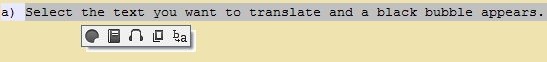 a) Select the text you want to translate, and a black bubble appears.. click on it, and the translation appears.